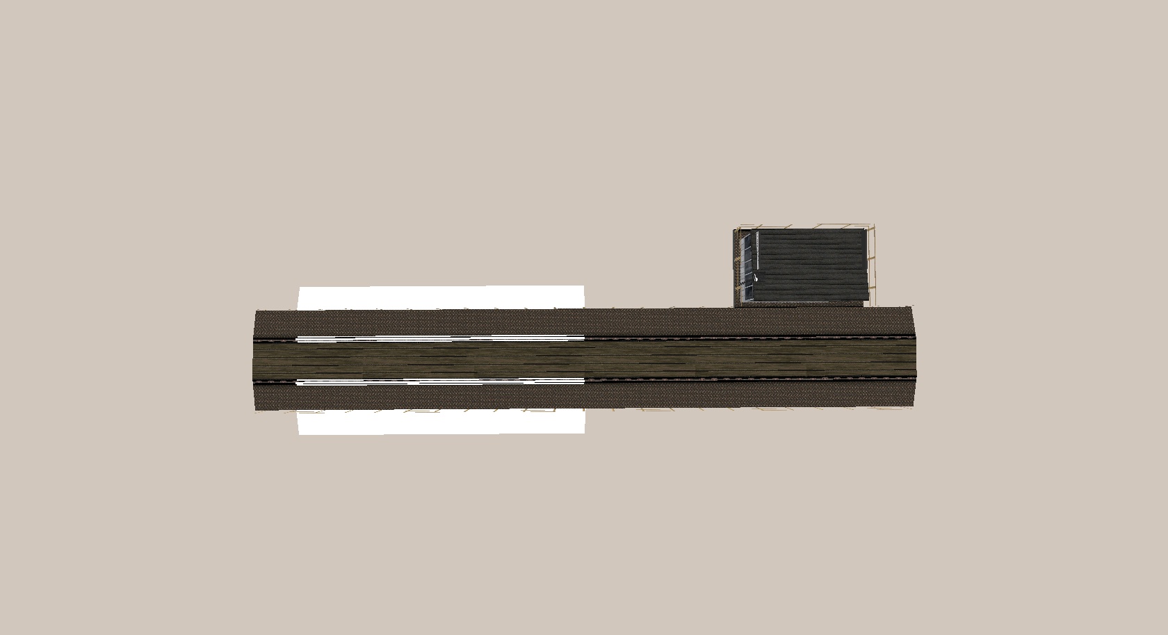 Die Bühne ist ein Extrateil und schmaler als die Gleisstücke mit Schotter (hier ohne Texturen, daher weiß). Durch Anheben der Bühne können die Schotterstreifen neben der Bühne nicht zum Verschwinden gebracht werden. Da sind wohl massivere Eingriffe nötig.
